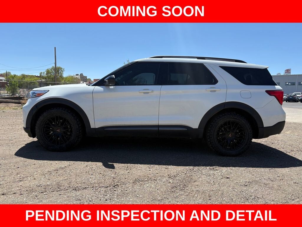 EQUIPMENT GROUP 202A SecuriCode Keyless Entry Keypad, Acoustic-Laminated Front Side Windows, Remote Start System, Heated Steering Wheel, LED Fog Lamps, silver-painted front skid plate elements, XLT SPORT APPEARANCE PACKAGE carbonized gray-painted grille bars and mesh insert, liftgate applique, lower body side cladding insert, skid plate elements, carbonized gray EXPLORER badge on hood, stretch diamond instrument panel appliques, ebony/light slate seats w/medium slate contrast stitching in all rows, unique light slate door-trim panel insert w/contrast stitching and sideview mirrors w/gloss black caps, Wheels: 20 10-Spoke Carbonized Gray-Painted, Tires: P255/55R20 AS BSW, Dual Chrome Exhaust Tips, FORD CO-PILOT360 ASSIST+ Speed Sign Recognition, Voice-Activated Touchscreen Navigation System, pinch-to-zoom capability, SiriusXM Traffic and Travel Link, Note: SiriusXM Traffic and Travel Link includes a, SiriusXM Traffic and Travel Link service is not available in Alaska or Hawaii, After your trial period ends, Sirius XM audio and data services each require a subscription sold separately, or as a package, by SiriusXM Radio Inc, See SiriusXM customer agreement for complete terms at www.siriusxm.com, All fees and programming subject to change, Trial subscriptions not available in Alaska and Hawaii, Evasive Steering Assist, Intelligent Adaptive Cruise Control, stop-and-go and lane centering, CLASS IV TRAILER TOW PACKAGE, TRANSMISSION: 10-SPEED AUTOMATIC (STD). Ford XLT with Star White Metallic Tri-Coat exterior and Ebony/Light Slate interior features a 4 Cylinder Engine with 300 HP at 5500 RPM*.