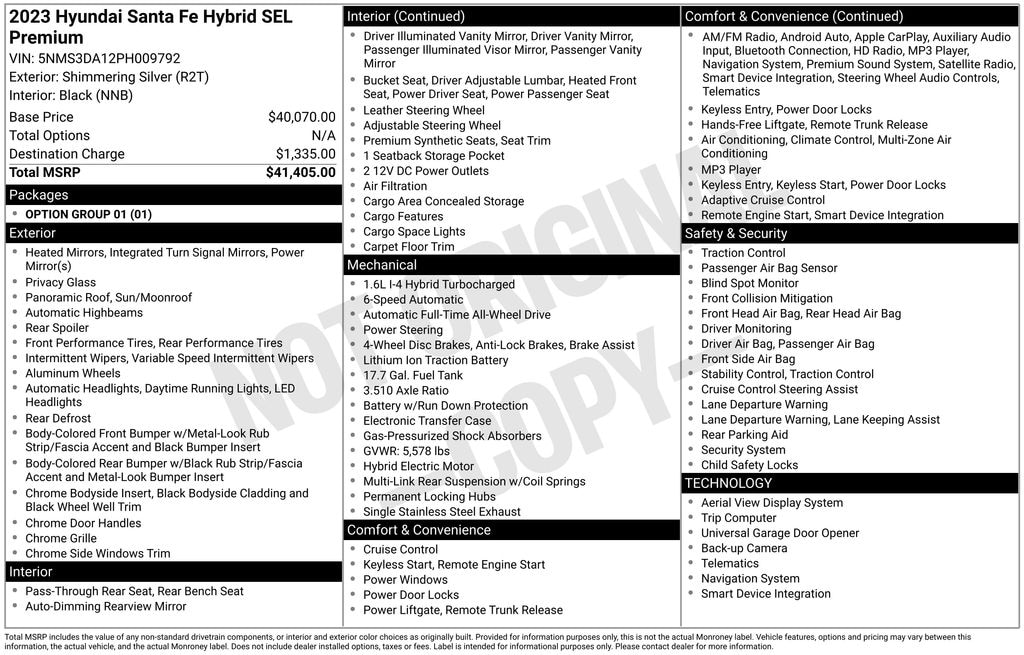 Shimmering Silver 2023 Hyundai Santa Fe Hybrid SEL Premium AWD 6-Speed Automatic with Shiftronic I4 33/30 City/Highway MPG
