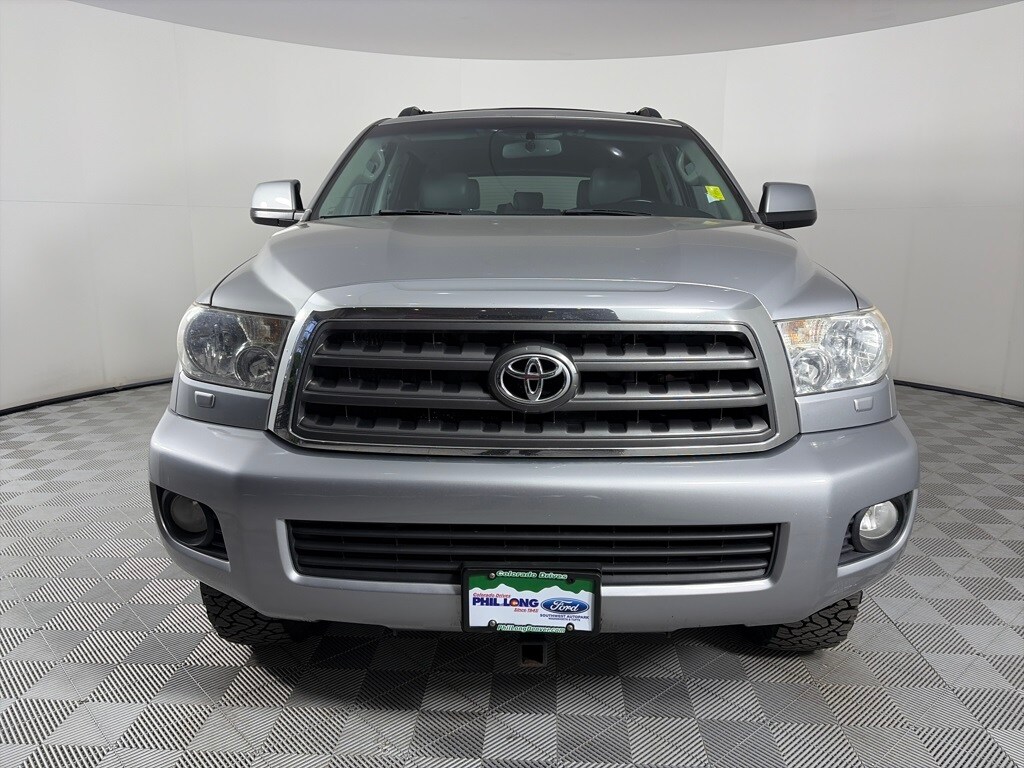 4x4, 3rd Row, Running Boards, Sunroof, Trailer Hitch, Rear A/C, Flex Fuel, XM Radio, AUX Port, Bluetooth®, CD Player, Aluminum Wheels, Dual Zone A/C. Rear Spoiler, MP3 Player, Privacy Glass, Keyless Entry, Child Safety Locks. Toyota SR5 with Silver Sky Metallic exterior and GRAPHITE interior features a 8 Cylinder Engine with 381 HP at 5600 RPM*.